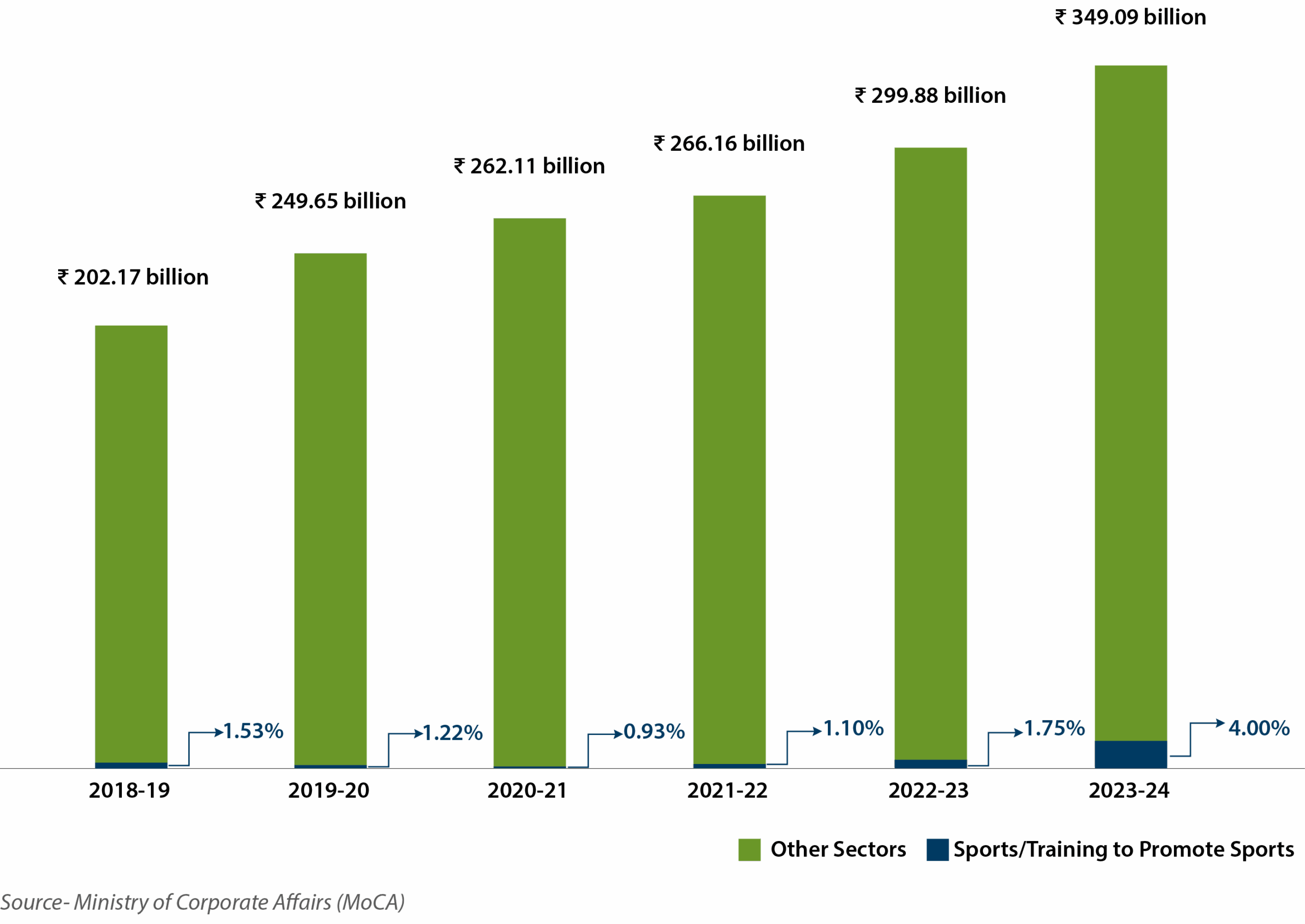 CSR investment in sports has been abysmally low throughout the last decade